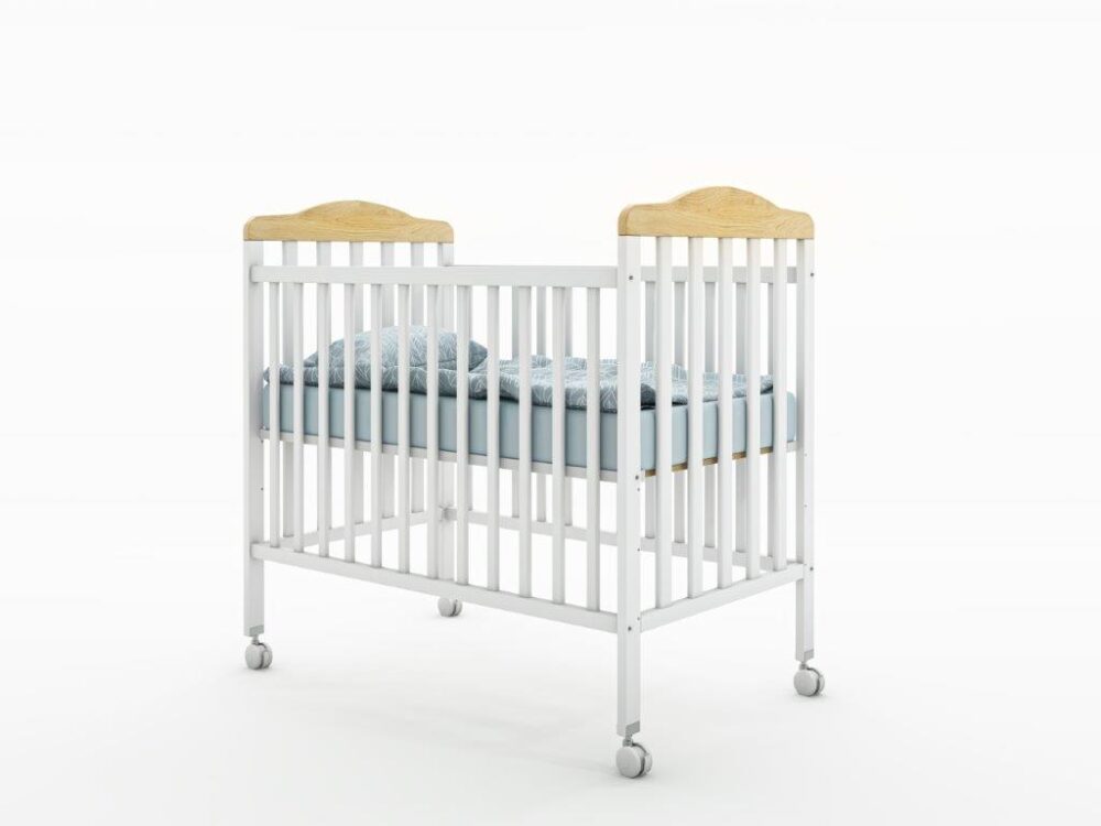 מיטת תינוק באורך מטר בשילוב לבן ועץ אלון